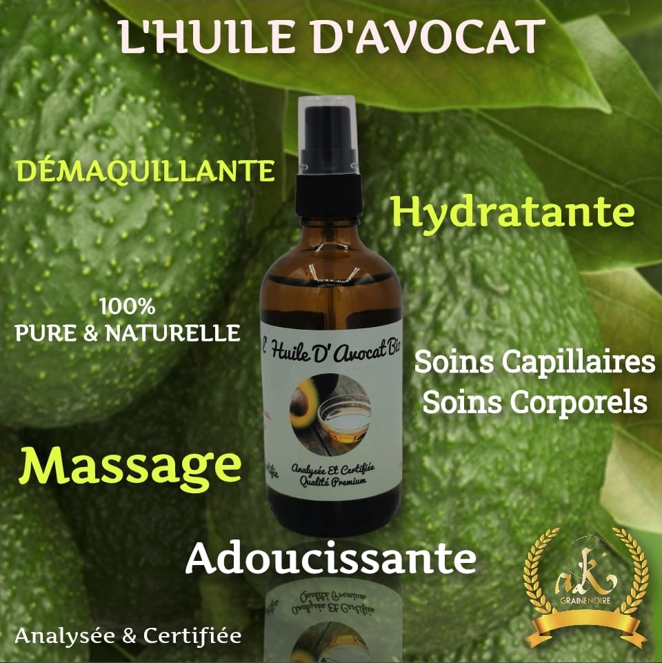 L’huile d’avocat pénètre le cheveu et s’utilise en soin (hyper nourrissant) .