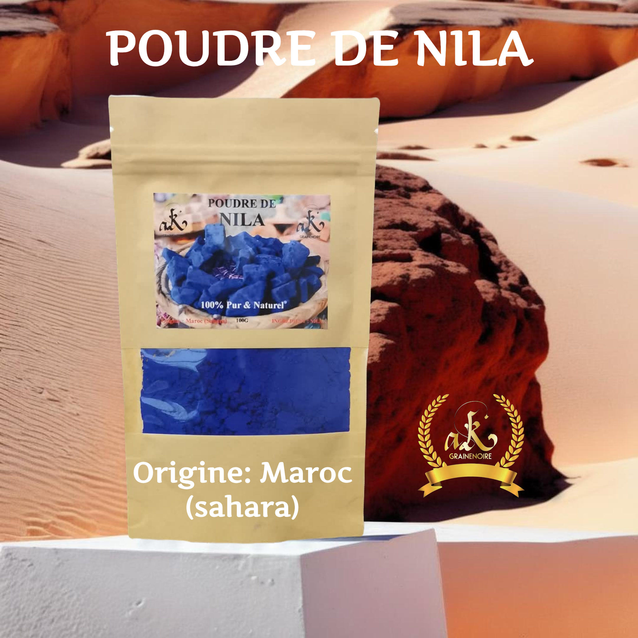 AK GRAINENOIRE vous présente LA POUDRE DE NILA BLEU du MAROC (sahara)