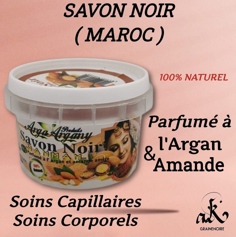 Vous propose le Savon noir du MAROC parfumé à L’ARGAN ET AMANDE AMÈRE 100% NATUREL, sans colorant, sans conservateur ni fixateur.