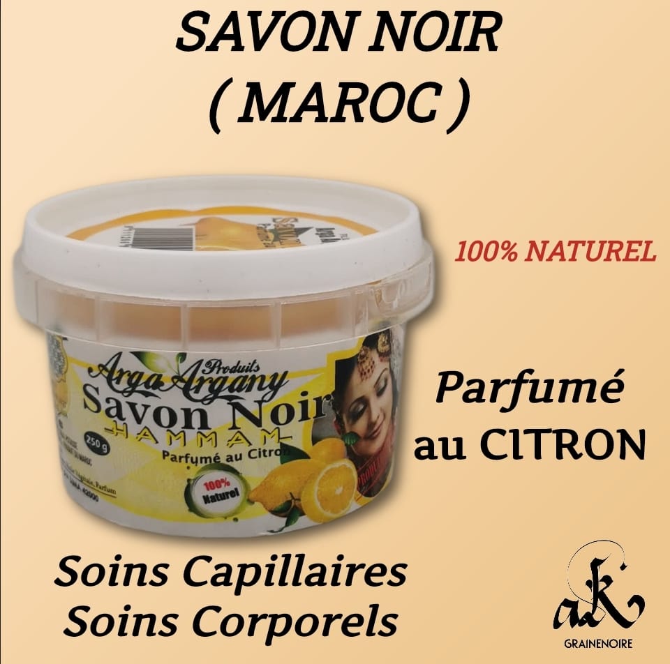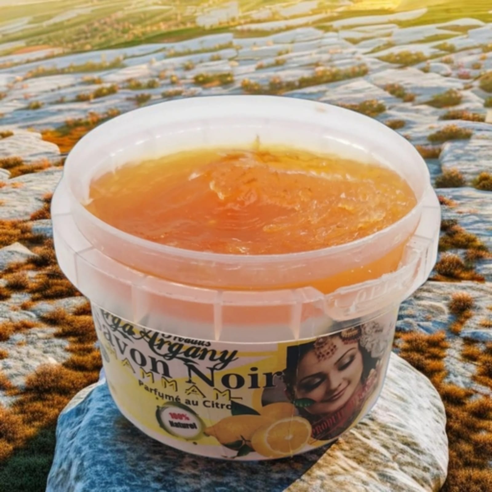Vous propose le Savon noir du MAROC parfumé au CITRON 100% NATUREL, sans colorant, sans conservateur ni fixateur.