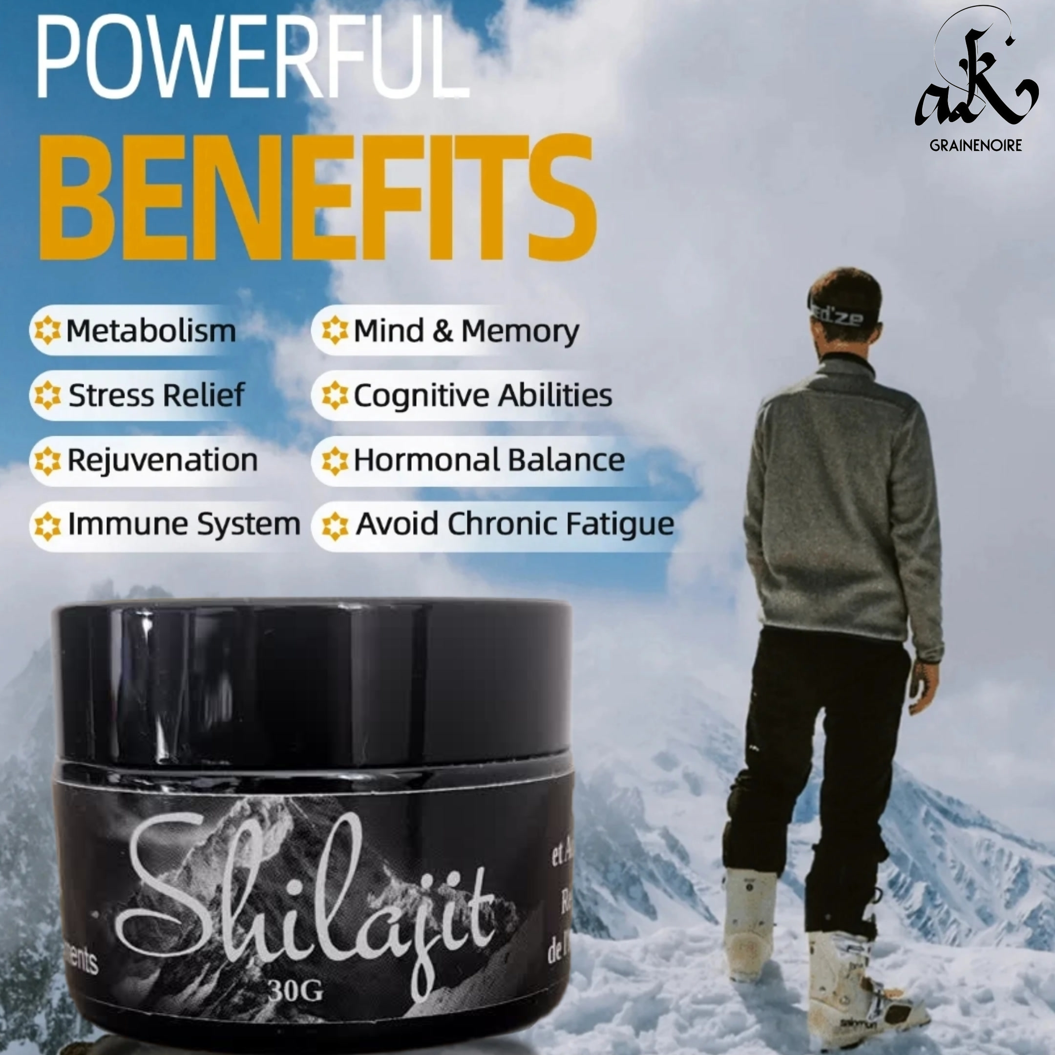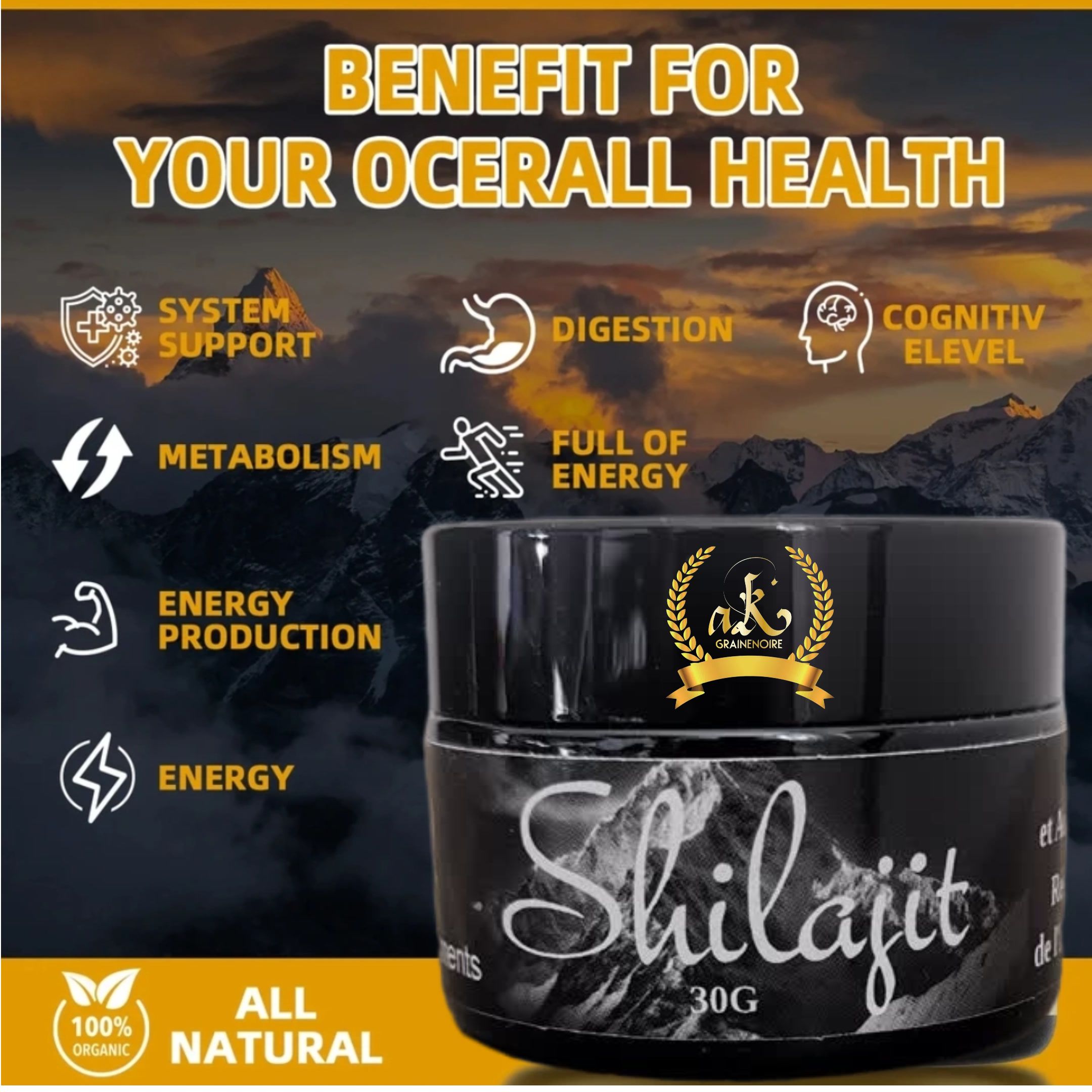 AK GRAINE NOIRE est fier de vous présenter LA RÉSINE DE SHILAJIT PURE DE L’HIMALAYA.
